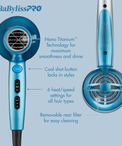 BaBylissPRO Hair Dryer, Nano Titanium 2000-Watt Blow Dryer, Professional/Ionic