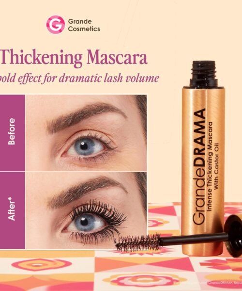 Grande Cosmetics GrandeDRAMA Intense Thickening Mascara with Castor Oil, Volumizing, Conditioning, Buildable Formula